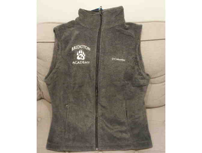 Ladies' M Columbia Grey Fleece Vest with Bridgton Academy Pawprint Logo