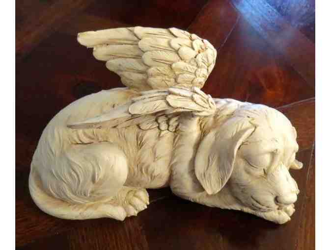 This pet memorial statue is a beautiful tribute to a beloved pet. Losing a dog can feel like losing a member of the family, and the sleeping puppy angel sculpture is a lovely keepsake to honor your furry friend. This nicely crafted figurine will serve as a loving memorial for your cherished pup.