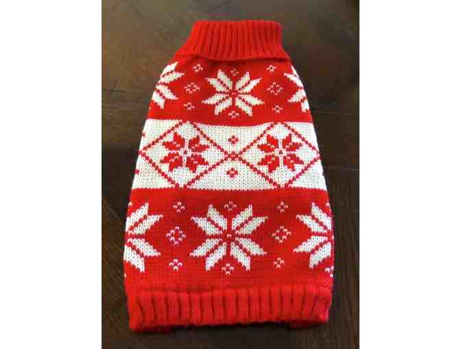 Keep your furry friend warm and cozy with this adorable winter turtle neck featuring a snowflake motif.  Your little one will be toasty warm on his or her winter walks.