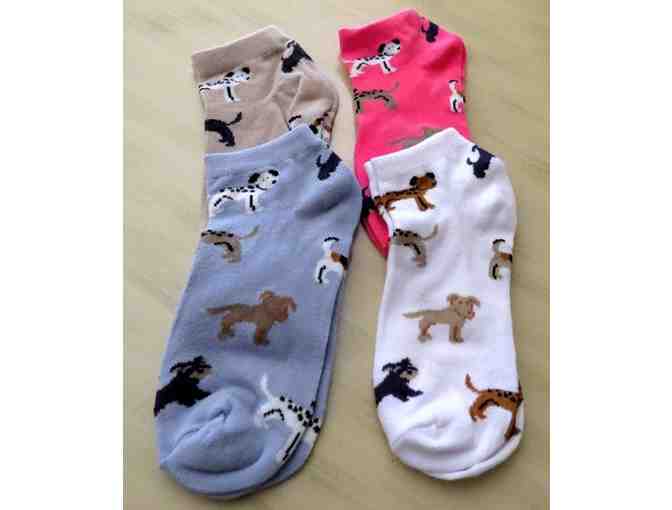Keep your toes toasty warm with this set of pink, tan, blue and white ankle socks featuring your favorite animal.....Standard adult 9-11 socks.