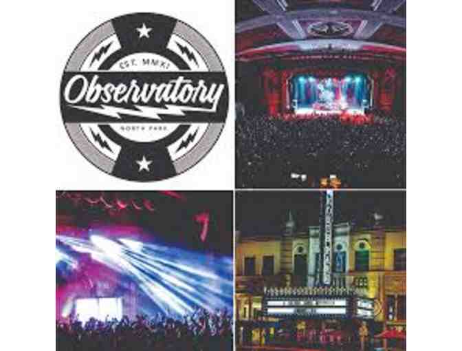 Observatory North Park - 2 General Admission Tickets and More
