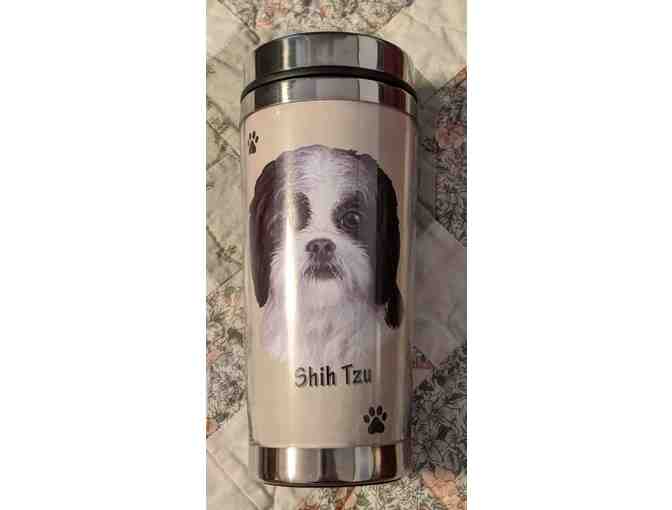 While walking your favorite Shih Tzu you can travel with your favorite beverage with this 20 oz insulated stainless steel tumbler featuring the adorable Shih Tzu.