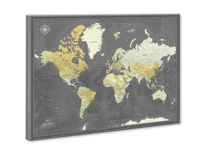 OUTSTANDING QUALITY: Printed on thick matt canvas using premium pigment to ensure bright and vibrant colors, the canvas travel map with pins is mounted on foam core board, and gallery wrapped on a wood stretcher.