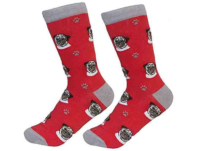 These red Pug socks are made from the finest quality cotton featuring 20 to 24 puppy faces woven on each pair of socks. These socks are super soft and comfortable and are machine washable.