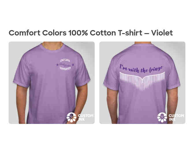 LBJ/LASA First Ladies Supporters T-Shirts. Buy one for your favorite first ladies fan. Short sleeve, lavender color - with small logo on the front and 'I'm with the fringe' with image of fringe on the back (dark purple and white print). Great quality shirts from Custom Ink, cute, soft fabric, and last forever. Design by First Ladies!