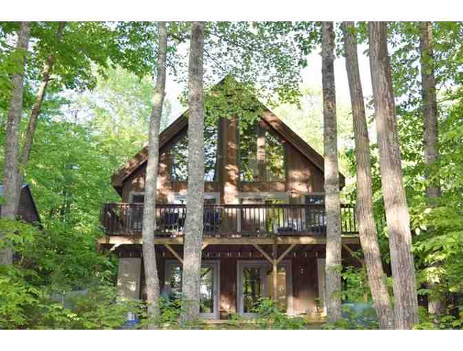 Bright, light and airy, this updated post and beam enjoys private shoreline and dock with mooring, kayak, canoe, and a grassy yard for lawn games. A great ski getaway, Chalet Ours is just under 20 minutes away from Shawnee Peak, or just over 45 minutes to Sunday River!