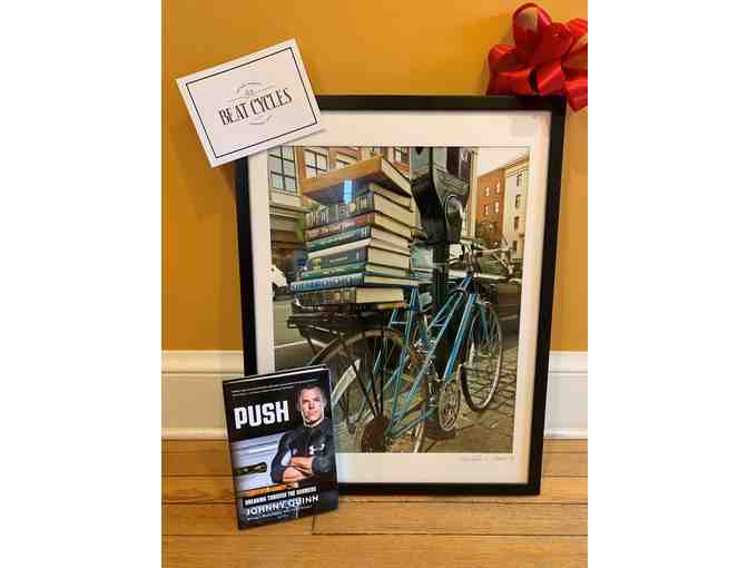 - Beautifully framed, matted, and signed original bicycle photograph. Size: 19 1/4" x 25 1/4"