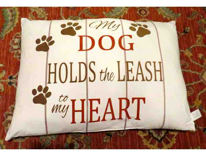 Your dog holds the key to your heart. Let everyone know with this 19X26 dog bed. Super soft and velvety with a taupe backing this adobarable bed features the quote "My dog hold the leash to my heart".