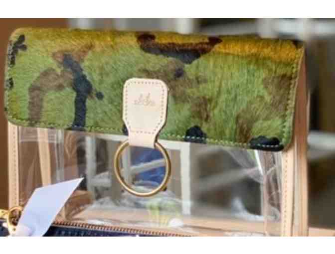 Game Day has never looked so cute, classic and interchangeable! Our Heidi Game Day purse is perfect for any stadium or event venue requiring a clear purse with way more versatility! You can interchange the Brazilian cowhide panel top to match your outfit, college/professional game or venue with just a snap. The purse is the perfect size for your phone, keys, sunglasses, lipstick and all your essentials. The base is trimmed with real leather (no fake stuff here) that will gain a beautiful patina just like the leather on a Louis Vuitton. The Heidi Game Day also comes with a gold crossbody chain. (Additional cowhide panels are available online.) The Heidi Game Day is also patent pending.