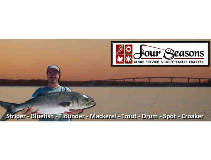 A full-day fishing trip for two (approximately eight hours) leaves from Beacon Marina in Solomons, Maryland. All bait and tackle will be provided for a wonderful day on the water. Your trip will be guided by Captain Pete Dahlberg with over-the-top enthusiasm and 20 years of guiding experience. This guy loves to fish, so join him on "Four Seasons" for a memorable experience.