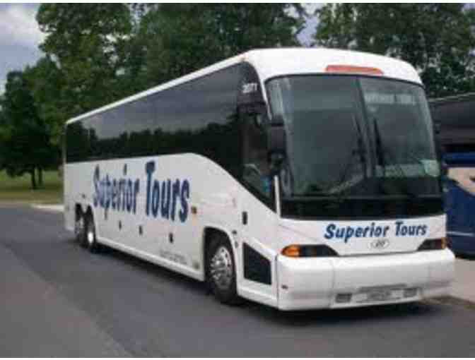 Take the luxurious Superior state-of-the-art motor coach to New York City and leave the driving to them. This is for two one-day round-trip vouchers. The buses have an onboard hostess to answer your questions and are equipped with Wi-Fi, pull-out trays for your snacks, and best of all, good drivers. And you can leave the umbrella that you don't need or the 600-page book on the bus while you play in the city.