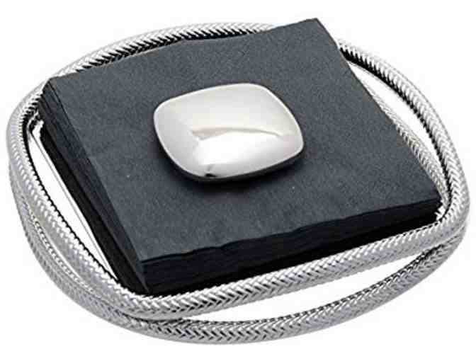 Full of fun and fashion-forward attitude, the Braid Cocktail Napkin Holder features an intricate braid details throughout its design. Set your napkins on the base and use the stainless steel weight to hold them in place.