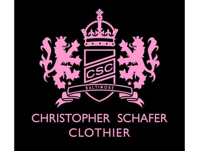 Your choice of fabric and cuff and collar styles on a custom made shirt for men...and pick a handmade tie to match. Christopher Schafer Clothier is a father-and-son team of expert tailors located in Fells Point that creates custom men's clothing of the highest quality, catering to both fashion-forward and conservative styles. Trained in London, Christopher brings the expertise and timeless sophistication of Saville Row tailoring to downtown Baltimore - and together, Seth and Christopher have become the custom suit makers of choice for business leaders, professional athletes, TV personalities, grooms, and all discerning men with good taste from Baltimore to New York City and beyond.