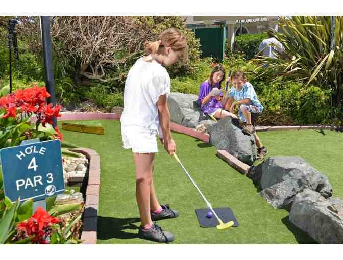This family-friendly item includes a round of 18-holes of mini golf for four (4) and four batting cage tokens.