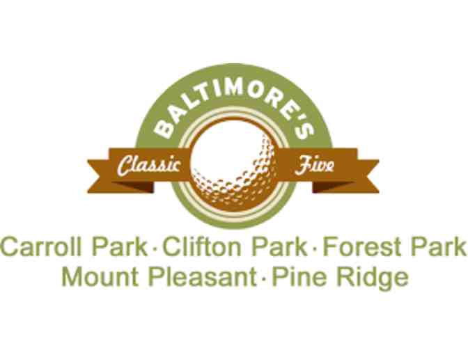A round of golf and use of a golf cart for four players at one of the classic five Baltimore Municipal Golf Courses: including Carroll Park, Clifton Park, Forest Park, Mount Pleasant, or Pine Ridge. Since its founding in 1985, BMGC has become a model for municipal golf organizations throughout the United States. The success of the courses along with its straightforward management style would become known throughout the country as the “Baltimore Model.”