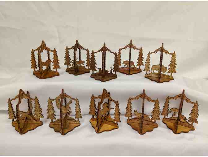 Handmade 3D Wooden Wildlife Ornaments - Set of 10