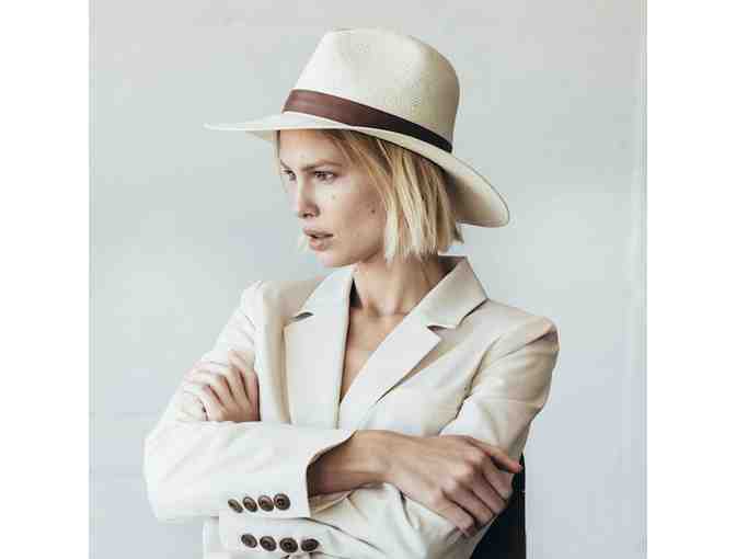 Design: A classic style fedora made with packable straw and a structured modern shape. White straw contrasted with a brown leather band creates a timeless design. This hat was made to accompany you to the beach, under the sun, to dinner and anywhere you travel in between.
