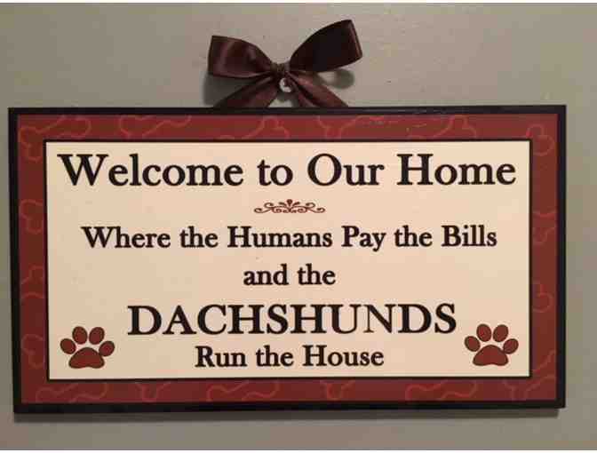 This sign has 'HUMANS' as plural so if you there are more than one human in the house, and... you HUMANS have more than one dachshund as in 'DACHSHUNDS' plural, this is YOUR sign!! Please verify this is indeed the sign that you want. More than one human with more than one dachshund.