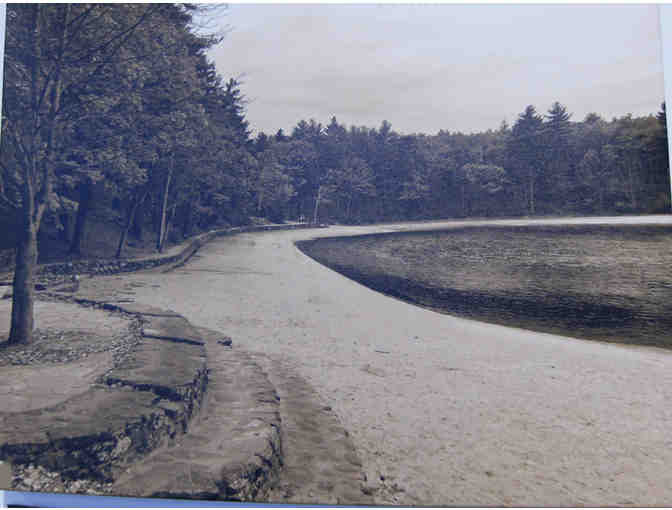 An autumn scene of Deep Cove at Walden Pond, Concord, Massachusetts -- just past the old bath house. Produced in sepia monochrome. It's tough to see, from this photo, but the words "Walden Pond" appear faintly in the sky at the top right-hand corner. Custom made, fine-art canvas Gicl'ee, produced with high quality fade-resistant inks and finished in a black gallery wrap along the edges. This canvas measures 16 x 20 inches.