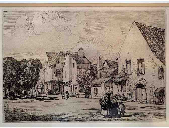 Etching framed in gold-painted wood with a paper liner and a UV plexiglass shield. Very fine condition. Image size is 9" x 7".