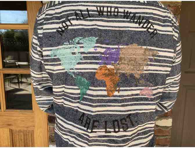 This is a 100% cotton - navy stripe men's flannel shirt.