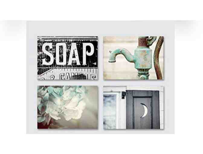 UNFRAMED perfectly coordinated set of 4 individual fine art photographs in shades of teal, turquoise, aqua, mint, blue and black. Perfect for your farmhouse or rustic bathroom or powder room.