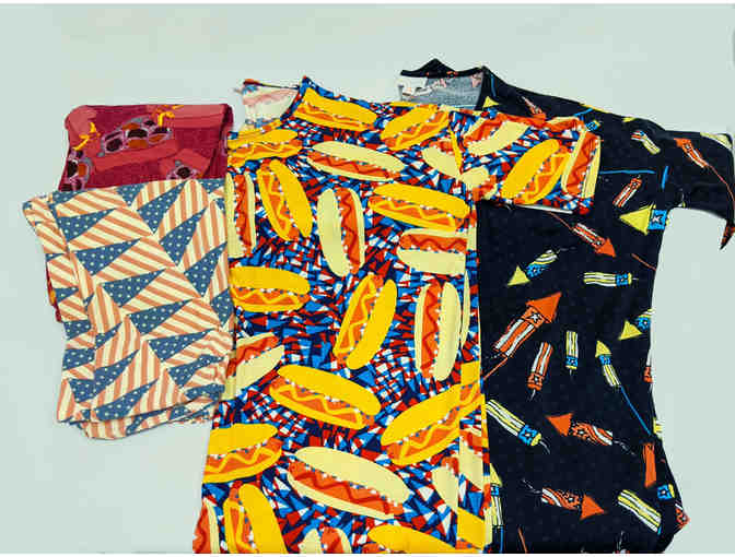 LuLaRoe is known for comfortable and fun fashion. In this gift basket, you can take home 2 Irma tops and 2 pairs of leggings.
