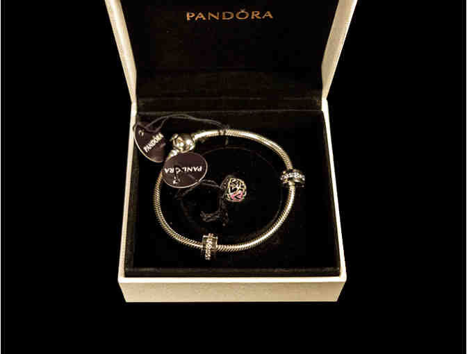 Is there such a thing as too much bling? Not according to Pandora, makers of collectible bracelets, charms, rings, earrings, and necklaces sold worldwide. The answer to some things is clear--there is no such thing as too much bling! This delicate and delightful bracelet set combines the shimmer of sterling silver and the sparkle of cubic zirconia with little peeks of pink for a style that fits any occasion. This stunning gift includes the Pandora Moments Freehand Heart Clasp Snake Chain Bracelet, one pink Openwork Freehand Heart Charm, and two Shining Path Clip Charms.