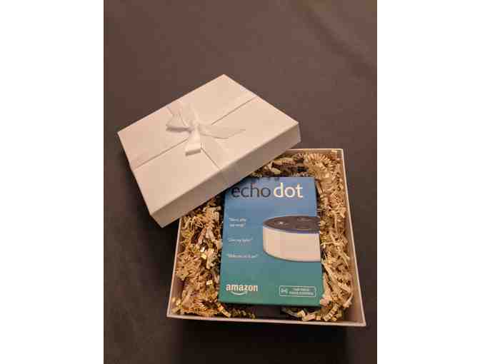 The Echo Dot comes with a gift box and is in its original packaging; it has never been opened.