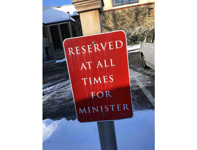 Does part of you burn with jealousy and desire when you see "Reserved at all times for minister"? Win this item and that precious real estate can be yours for 8 days - two Sundays and a whole week in between. Pick Christmas Eve or a Major Music Service, the rummage sale or any other bottleneck event. Rev. Chris's space will be all yours.