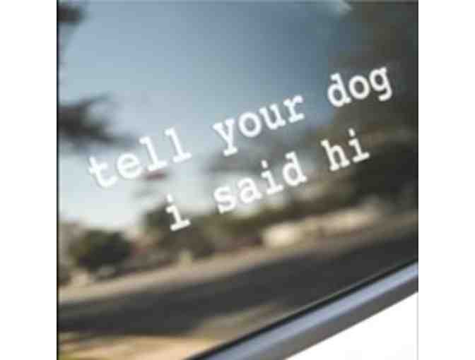 Decal - Tell Your Dog I Said Hi (TM) Vinyl Decal in white