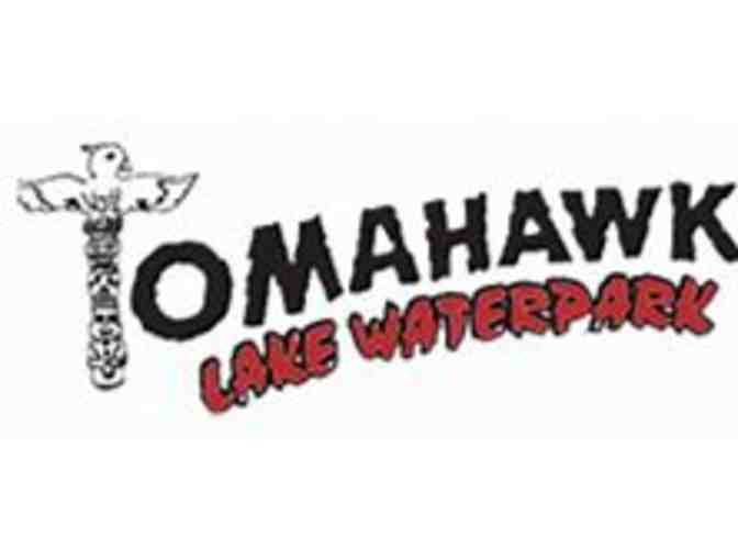 Four General Admission for Four Person plus four free unlimited use of Waterslides "Pay One Price Wristbands" at Tomahawk Lake Waterpark in Sparta, New Jersey.