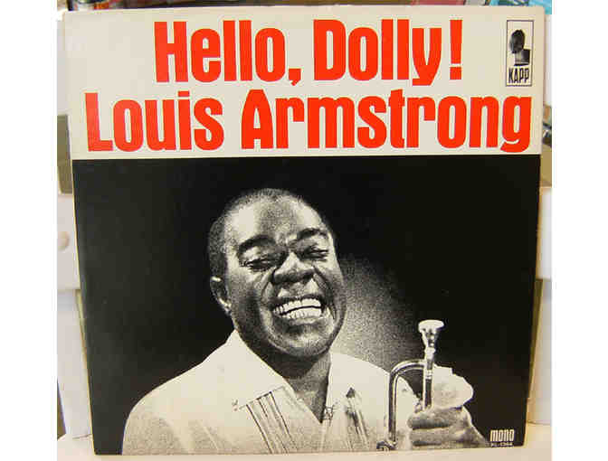 Vintage vinyl record album. "Hello, Dolly!" by Louis Armstrong and the All Stars. Kapp Records, [1963]. Mono. The All Stars feature Billy Kyle, Arvell Shaw, Danny Barcelona, Joe Darensbourg, Big Chief Russell Moore, and Glen Thompson. 12 songs: "Hello, Dolly! ; "It's Been a Long, Long Time" ; "A Lot of Livin' to Do"; "A Kiss to Build a Dream On"; "Someday" ; "Hey, Look Me Over" : "I Still Get Jealous" ; "Moon River" : " Be My Life's Companion" : "Blueberry Hill" : "You Are Woman, I Am Man" : and "Jeepers Creepers." Cover has average wear, and record surface seems clear.