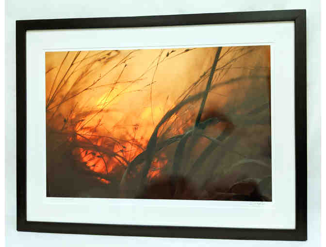 This beautiful photo captures the essence of the Flint Hills perfectly and would be a wonderful addition to your home. Photographic print titled "Grassland Sunset" in 20"x27" exhibition frame and printed by local artist on cold press fine art paper.