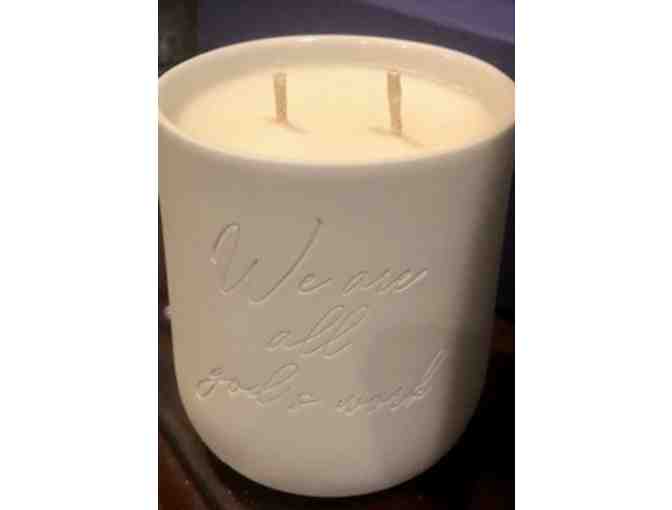This candle is personally from LeAnn Rimes.  She poured the candle and she personally chanted over it and a recording of the chant, which was pitched to the frequency of universal creation, 432 hz continued to play over it as it solidified.  This process encoded her voice, intention and Love for you into the molten wax, and when lit, releases into the very air you breathe.