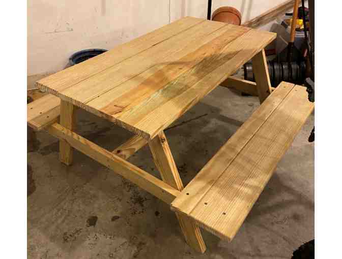 Hand crafted child-sized wooden picnic table. Picnic table can be painted or stained to match your family's personality!