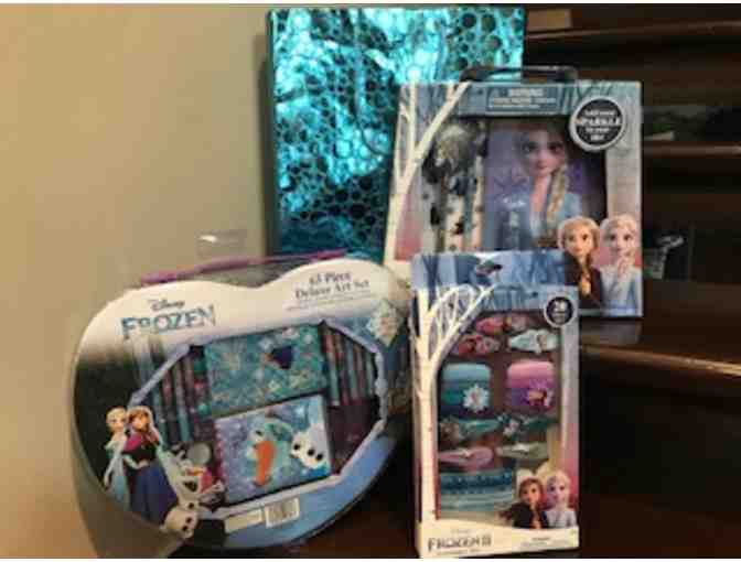 2) Disney Frozen II Glam It Up Stationery Set- Stationery set in box includes journal, eraser, stickers, pencil, and fuzzy pen.