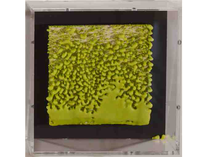 "Created using a strict, repetitive process of layering encaustic medium on a 6"x6" panel. A demonstration of how repetitive processes lead to the spontaneous generation of organic forms, such as cell division."