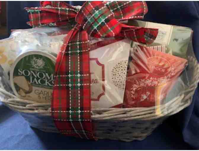 Prepare for your next party with this appetizer gift basket! This tasty item features cheeses, crackers, and chocolates to delight your visitors.