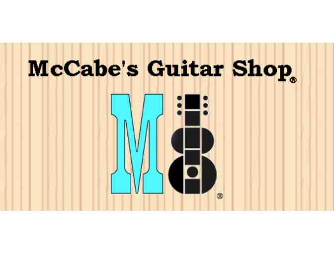 McCabe's is a musical instrument store in Santa Monica, California, opened in 1958. We specialize in acoustic and folk instruments: guitars, banjos, mandolins, dulcimers (both hammered and plucked), fiddles, psaltries, bouzoukis, sitars, ouds, ethnic percussion ... you get the idea. Also electrics and amps. All significant brands usually in stock. We sell, fix and teach, and have all the stuff that anyone would need to go with, including thousands of books and recordings. It's a nice, comfortable place to visit and try things out. Come by if you're in the area — browsers and itinerant musicians welcome.