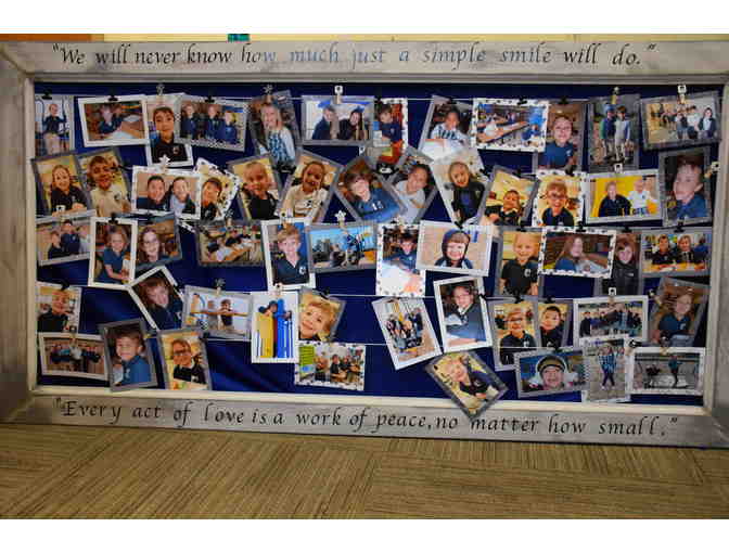 This handmade shabby sheek picture hanger features pictures of each 1st grade student.