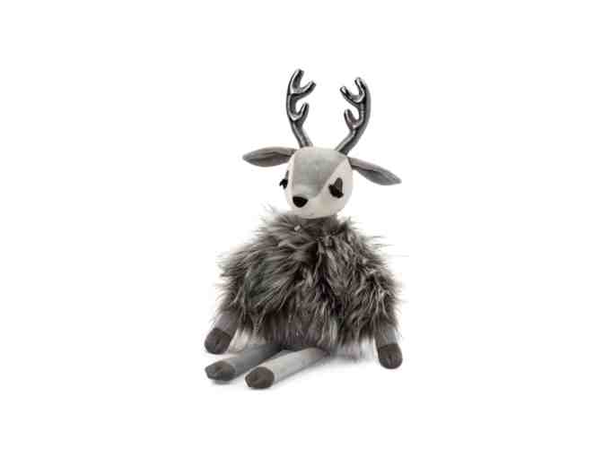 This dainty reindeer plush is as fashionable as can be! She's got shiny, silver antlers, long black eyelashes, and a luxuriously fluffy cape tied with a ribbon. Liza is perfect for playing with or showing off her beauty on the shelf - she's weighted with beans, so she sits by herself! Your little one is sure to love wrapping her up in a hug.