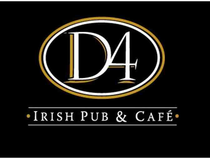 D4 Irish Pub & Cafe, named after Dublin's premiere zip code, brings a taste of Dublin to Chicago's Streeterville neighborhood. Serving modern favorites with an Irish flair, our kitchen puts the comfort of home cooking into all of our signature dishes. From our rustic shepherd's pie and hand battered fish & chips to our towering Angus beef burgers and warm bread pudding, D4 uses the finest farm fresh healthy ingredients in all of our homemade recipes and sources produce from local farms