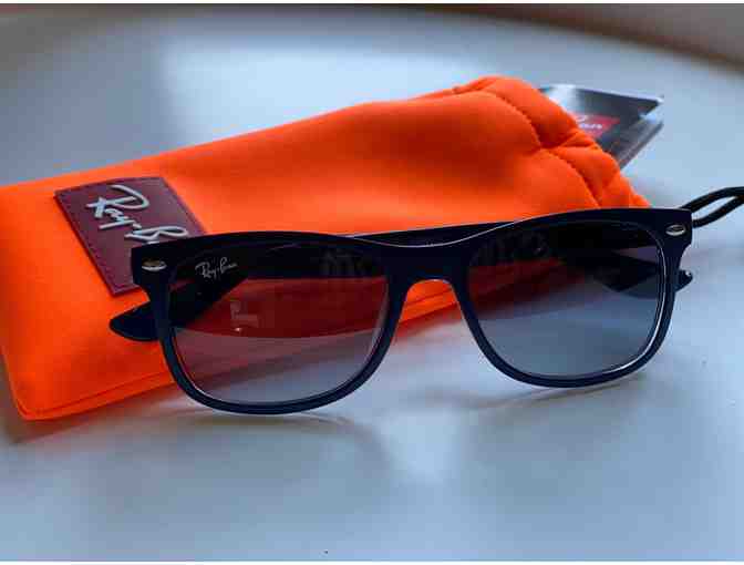 My future's so bright... I gotta wear these Kids' blue Ray Ban sunglasses. Protect that special kid's eyes with the best quality lenses. This child-size version of one of the most popular sunglass styles offers the same iconic square lenses, comfortable fit and 100% UV protection as the adult version.