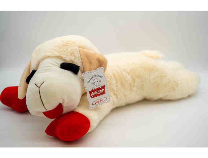 Nostalgia for you and a big, adorable toy for your pooch! Lamb Chop is a female sheep puppet created by Sherri Lewis in 1957 to entertain children. This beloved character still brings instant joy for pups and peeps alike. Little known fact: Lambchop is a 3-star general in the Marines since she still performs for the military. Measuring 24” long and 12” wide this incredibly soft, large plush dog toy will become a favorite play toy and is great for cuddling, too.