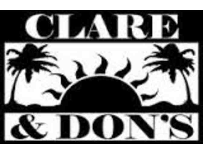 Step into Clare & Don's Beach Shack and you will feel like you're on a beach vacation. A casual menu with a laid back atmosphere. Bid on this $25 gift certificate to enjoy burgers, seafood, vegetarian or more at Clare & Don's Beach Shack.