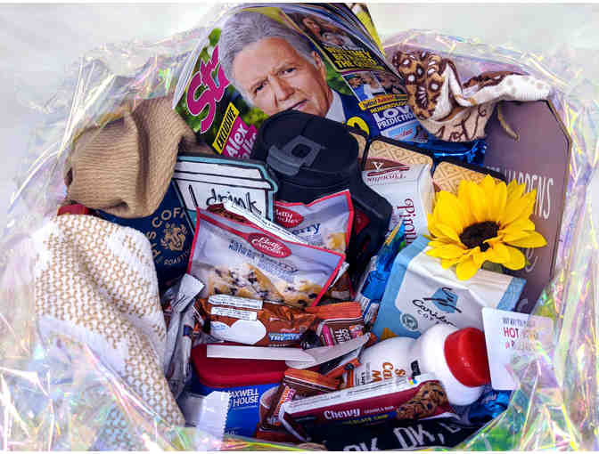 This basket has everything you need thanks to Betty Hughey & the Council Grove Grandma's Group. The winner of this basket will get 2 gift cards to coffee shops, 2 bags of flavored coffee, tea towels, signs, traveling coffee mug, snacks, a magazine, creamer, and the perfect coffee-lover socks.
