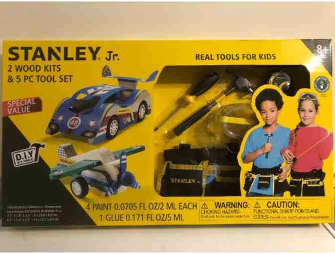 The Stanley, Jr. 2 Wood Kits & 5-Piece Tool Set is an ideal way to educate children on how to use tools and their imagination to create their own toys. This set also helps children with coordination and following instructions. It's also a great way for adults of all ages and children to have fun working together.