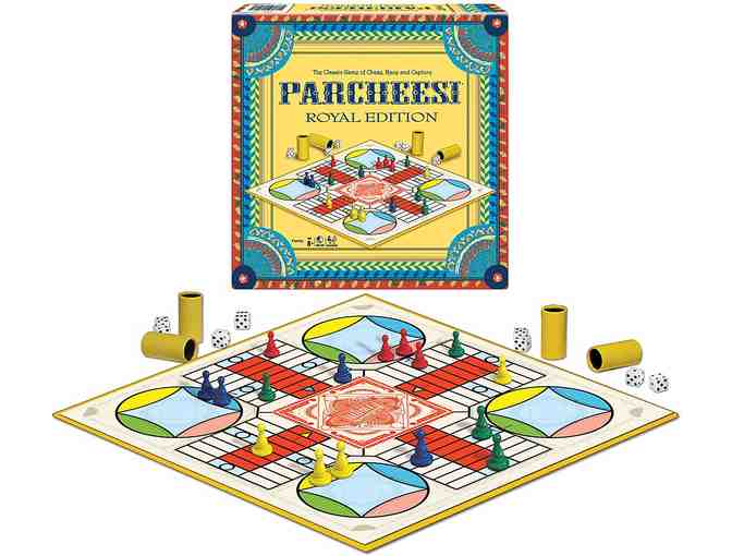 The cherished look and feel of Parcheesi, including the dice cups, will surely bring back fond memories. In Parcheesi Royal Edition, players race to get all of their pawns into the center home space.