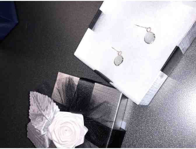 Sterling Silver drop earrings with cabachon aquamarines with bamboo design
